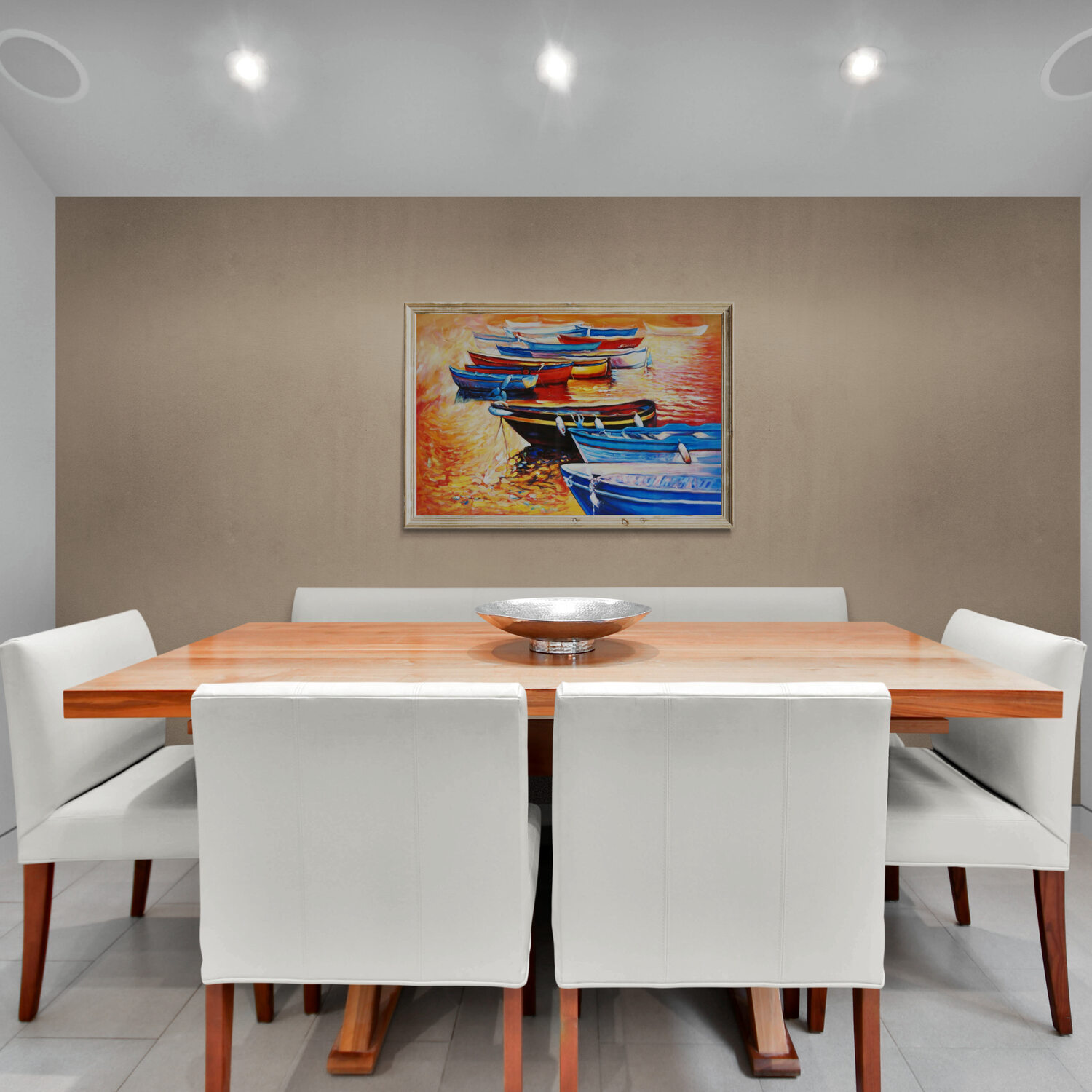 - Χειροποίητος πίνακας με βάρκες on high quality Canvas with environmentally friendly Oil Paint