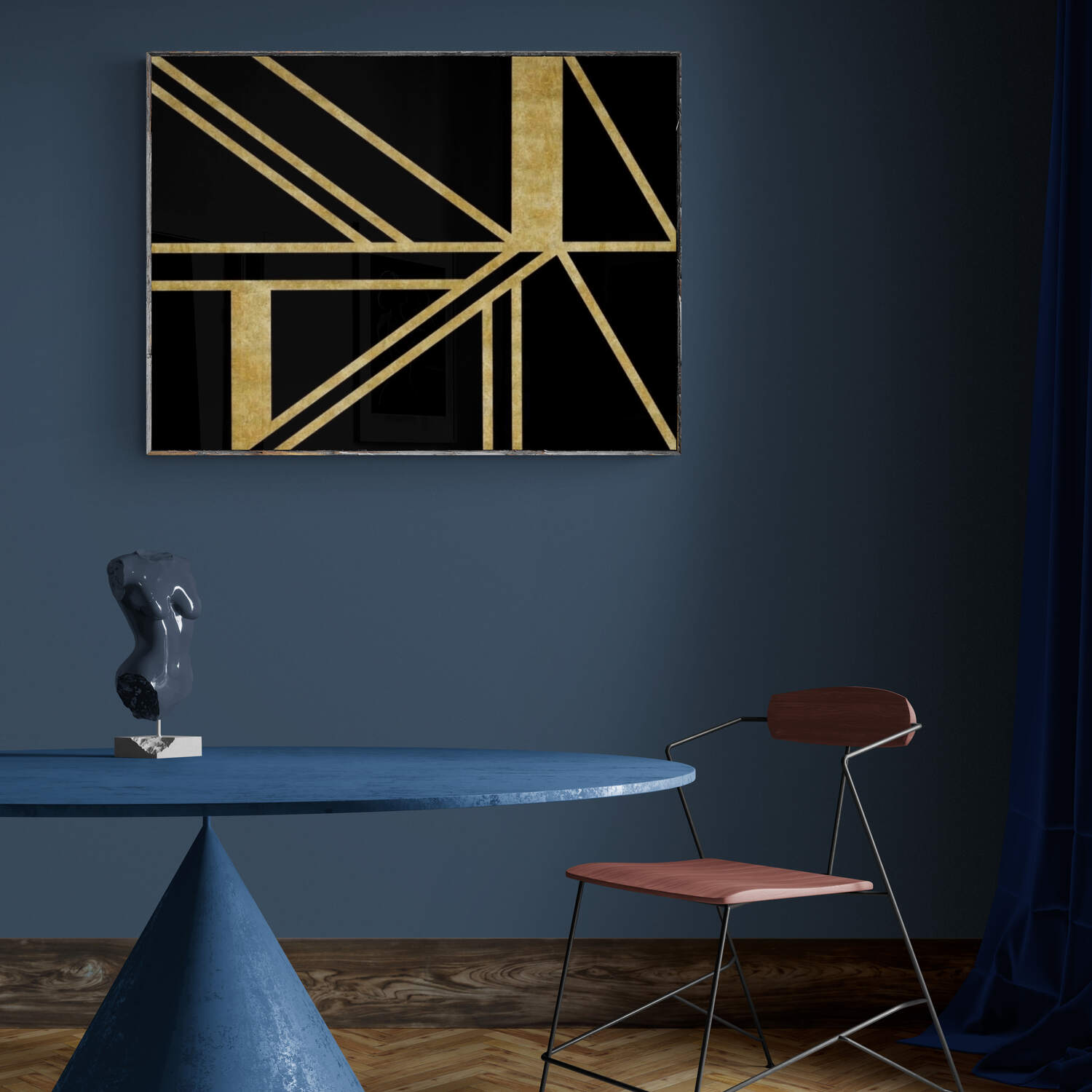 Black painting with gold lines
