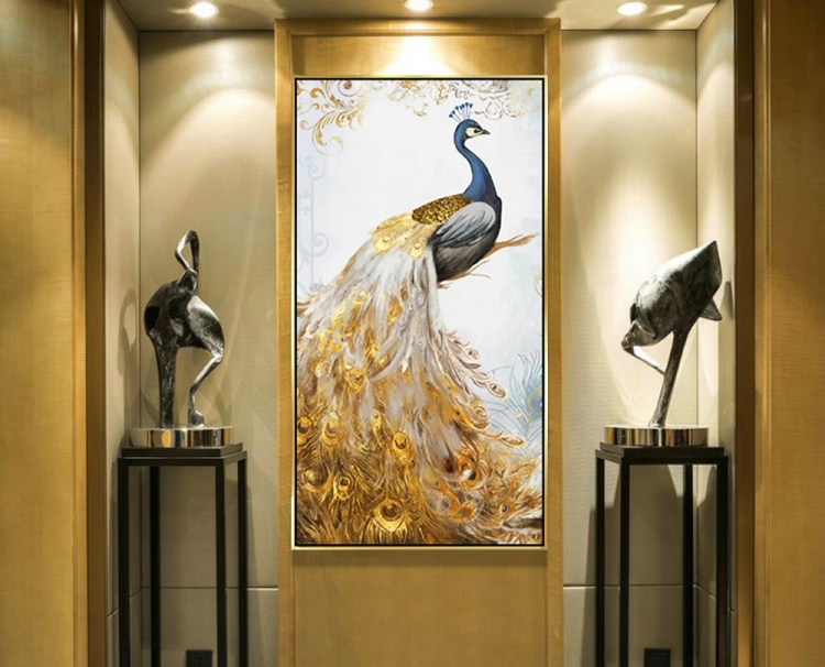 - Gold foil peacock handmade painting on high quality Canvas with environmentally friendly Oil Paint