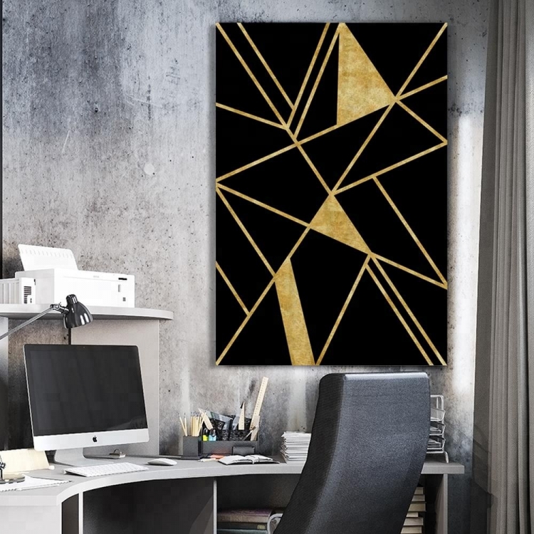 - Χειροποίητος πίνακας ζωγραφικής χρυσά τρίγωνα σε υψηλής ποιότητας καμβά με φιλική προς το περιβάλλον λαδομπογιά