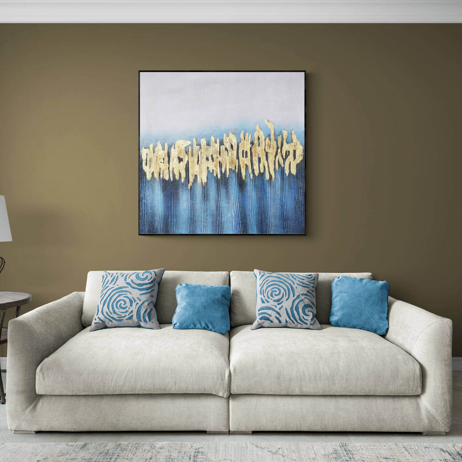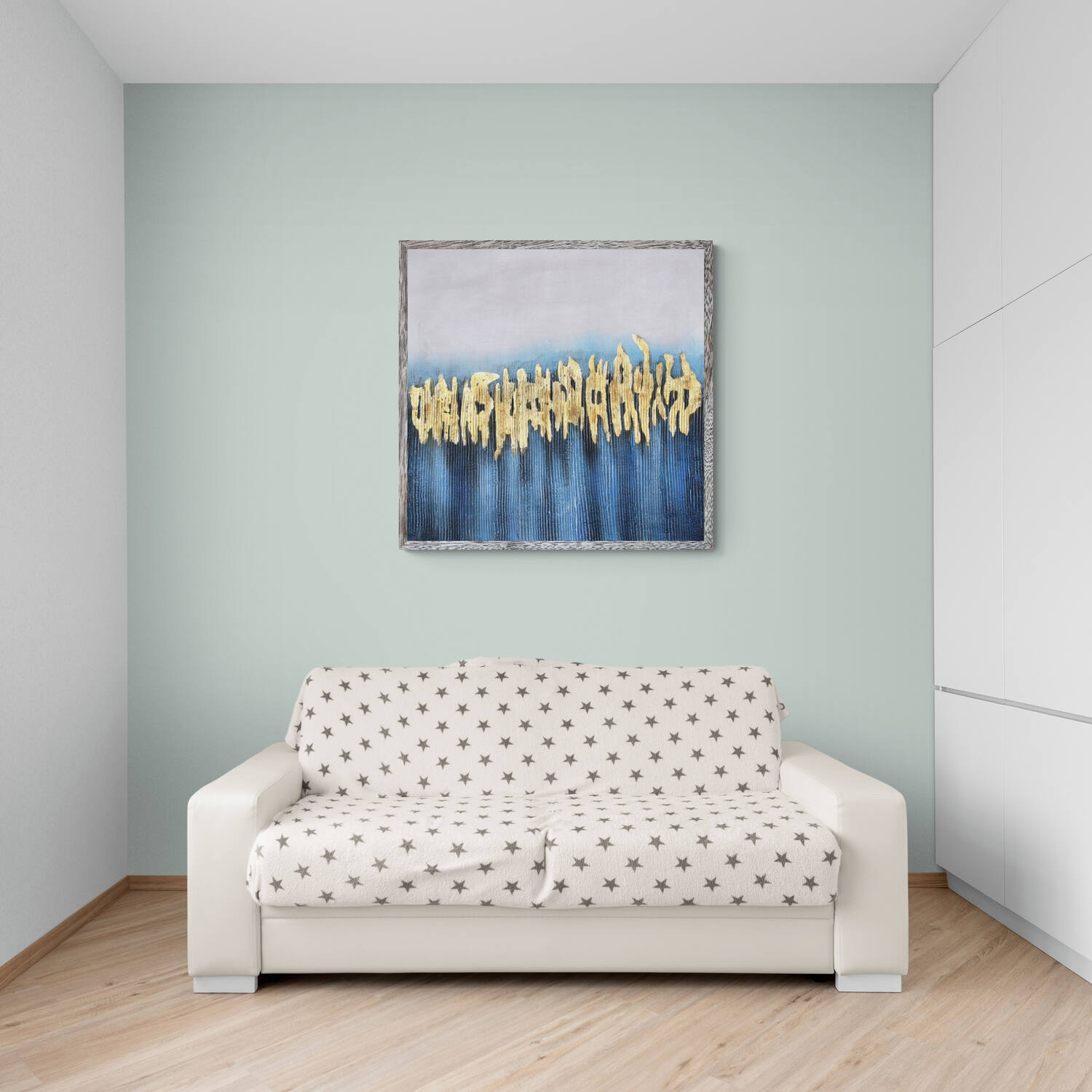 - Abstract handmade gold and blue leaves on high quality Canvas with environmentally friendly Oil Paint
