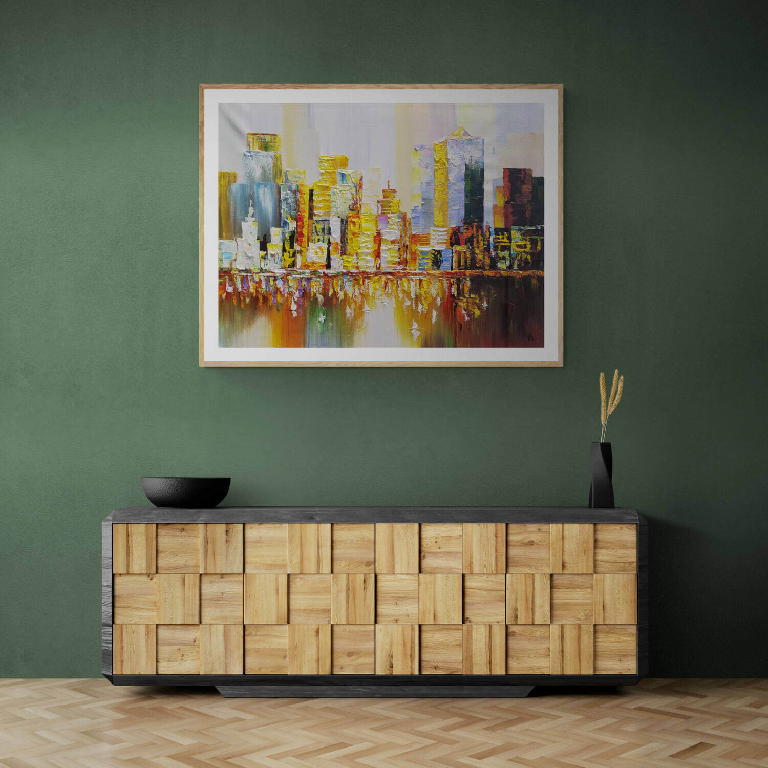 • Handmade Oil Painting | Abstract Golden City on high quality Canvas with environmentally friendly Oil Paint